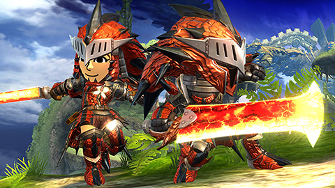 Go on the hunt with this Mii Swordfighter costume based on armor found in Monster Hunter 4!