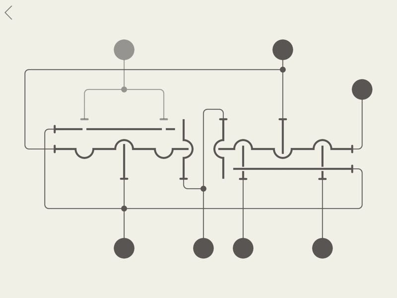 The goal of Hook is simple. You basically press a button to retract a line. It sounds very simple and it is at first but like many puzzle games it gets harder as you move along. At first you are presented with a simple one button connected directly to one line. You press it, the line retracts and you win! Well done you! The next few levels introduce multiple buttons and lines that interlace with each other – this is where it gets a little difficult as you have to plan on which lines to remove before clearing others. All in all it is very straightforward as all the lines are clearly separated with their own buttons controlling them. It’s when you get to the levels with the maze like connections with rotating joints that connect one button to many separate lines that you will start to feel your brain hurt. Do not fear though, as you begin to get use to the new mechanics Hook lays out before you it will through a few more into the mix such as wireless transmission- trust me, they are a blast!