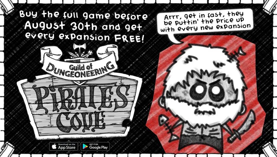 Guild of Dungeoneering’s blend of card game and dungeon crawling is currently available on iOS and Android devices, for €3.99 / £3.69. The price of the game plus the new Pirates Cove Expansion Pack will increase by $1 on a date to be announced.