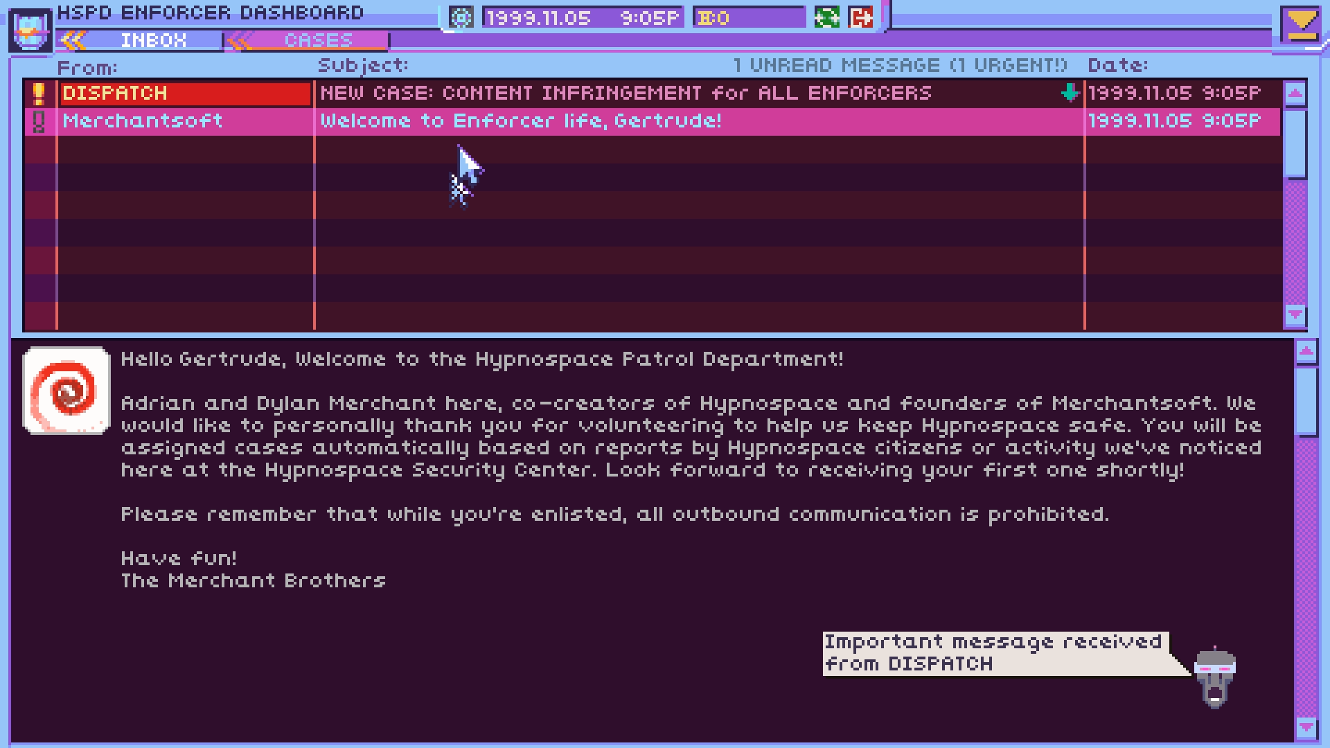 Set in the year 1999, Hypnospace Outlaw asks you to scour the Hypnospace, checking out a wide variety of weird and wonderful websites, keeping an eye on your work email, and downloading a plethora of apps that may or may not be useful. You are tasked to trawl and police an alternate reality internet, keeping this very different online experience free from bullying, copyright theft and vandalism.