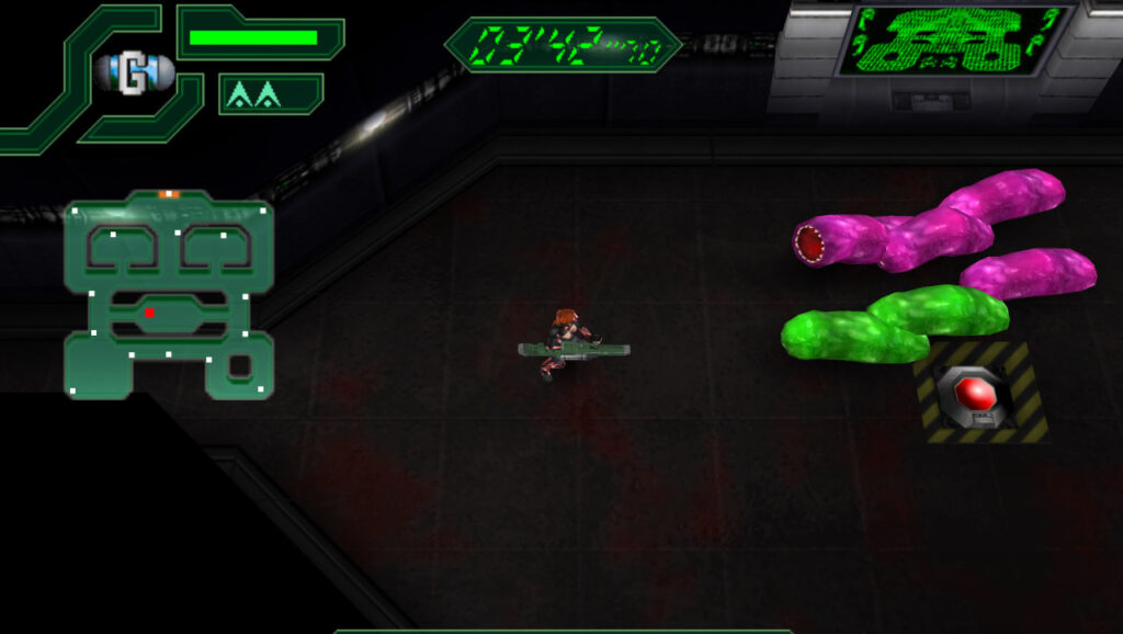 Straight off the bat I’m just gonna say it, this is one of the best remakes in this series from the several I’ve sampled so far. Alien Syndrome harks from the mid 80’s, so there was plenty of scope to improve the experience with a 3D remake. The isometric run & gun gameplay is still there, only now we have twin stick control for a silkier blast through alien infested spaceships. Things can be as simple as just rescuing as many survivors and getting to the exit before the bomb explodes, but the enemy variety and traps/pitfalls can lead to some hairy moments.