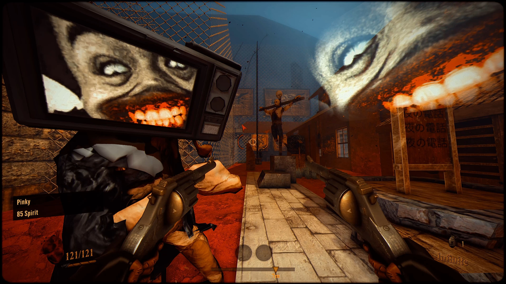 Devilated has you taking a giant fall into what I would assume is hell, kicking your way through some would and then greeted with the title screen before you’re handed two revolvers and told to go kill EVERYTHING.