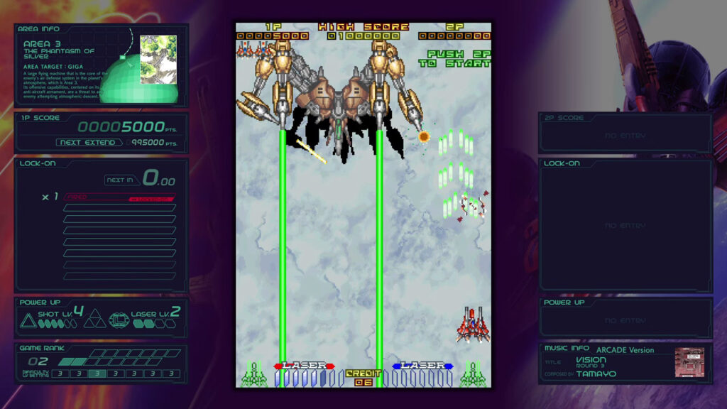 Ray’z Arcade Chronology gives eager shmuppers access to three fantastic shoot ‘em up titles in the “Ray” series, RayForce, RayStorm and Raycrisis, an iconic shmup franchise from Taito spanning nearly 10 years across the 3 mentioned titles and a 4th that was cancelled called R-Gear.